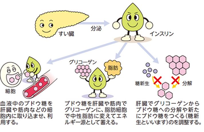 インスリンは膵臓から分泌されるペプチドホルモンの一種で、糖をエネルギーに変え、血糖値を下げる働きを持っています。